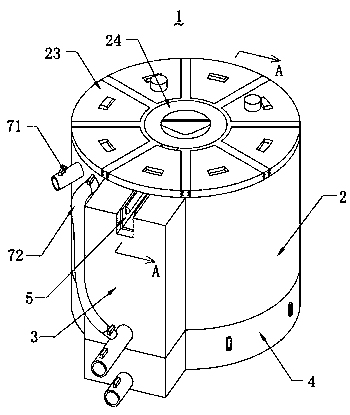 8.根据权利要求1至3任一所述的景观鱼池新型家用污水处理设备,其特征在于:所述主处理腔的顶部为可拆卸的结构;其中所述沉淀区的顶部内壁设有螺纹,圆形的沉淀区盖板通过螺纹旋入密封所述沉淀区的顶部;每一所述处理区的顶部径向隔板的内壁设有凹槽,扇形的处理区盖板通过卡入凹槽内插入密封所述处理区的顶部。