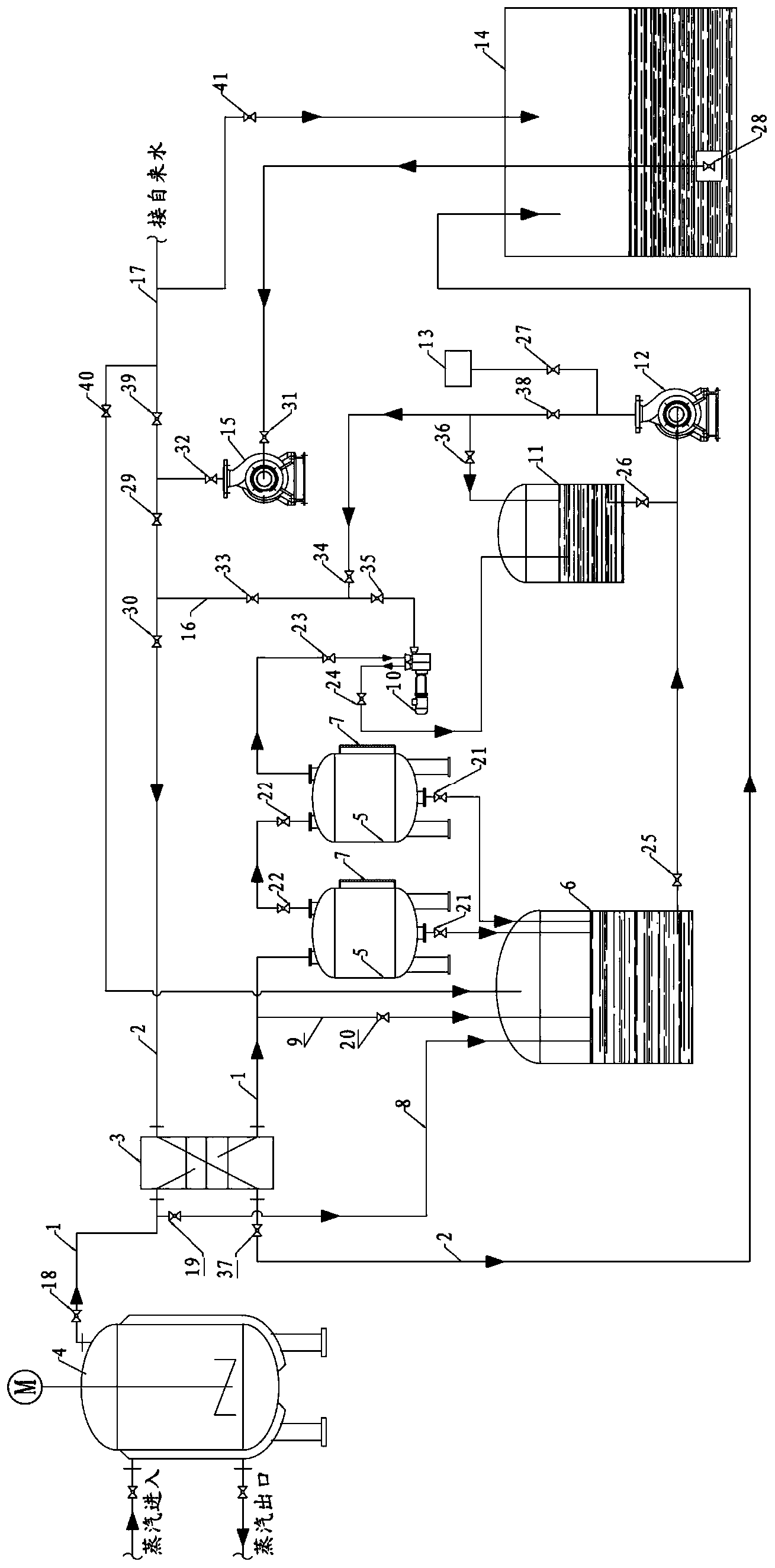 本发明要解决的技术问题是:如何对污水连续蒸发浓缩过程中产生的蒸发汽进行回收利用,实现蒸汽零排放,且大大降低了微小型化工企业的污水处理投入成本。