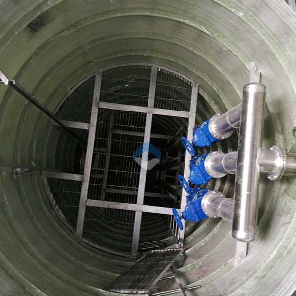 玻璃钢筒体:连续缠绕加强玻璃纤维筒体。优化设计,通过计算机控制缠绕走向和厚度,确保厚度均匀并达到设计要求。质量稳定优良,出厂前进行防渗漏试验,确保无泄漏。